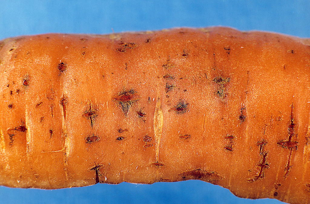 Rotsårnematoder, skade på gulrot. (Foto: B. Hammeraas / NIBIO)