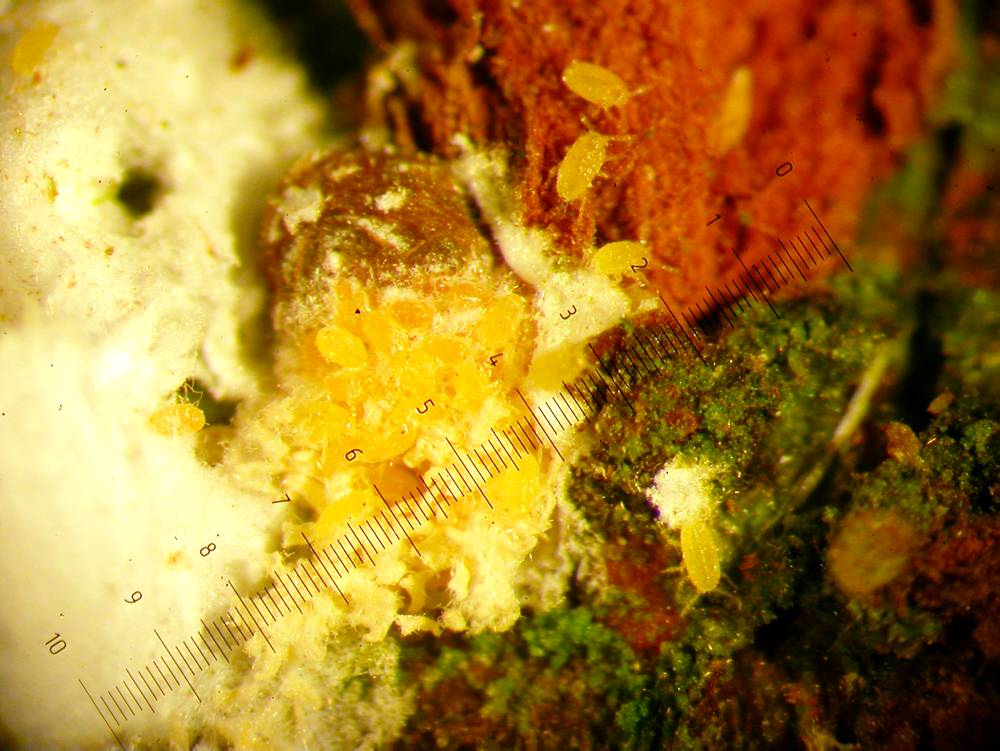 Eggsekk av epleullskjoldlus (Foto: T.S. Eklo, NIBIO)