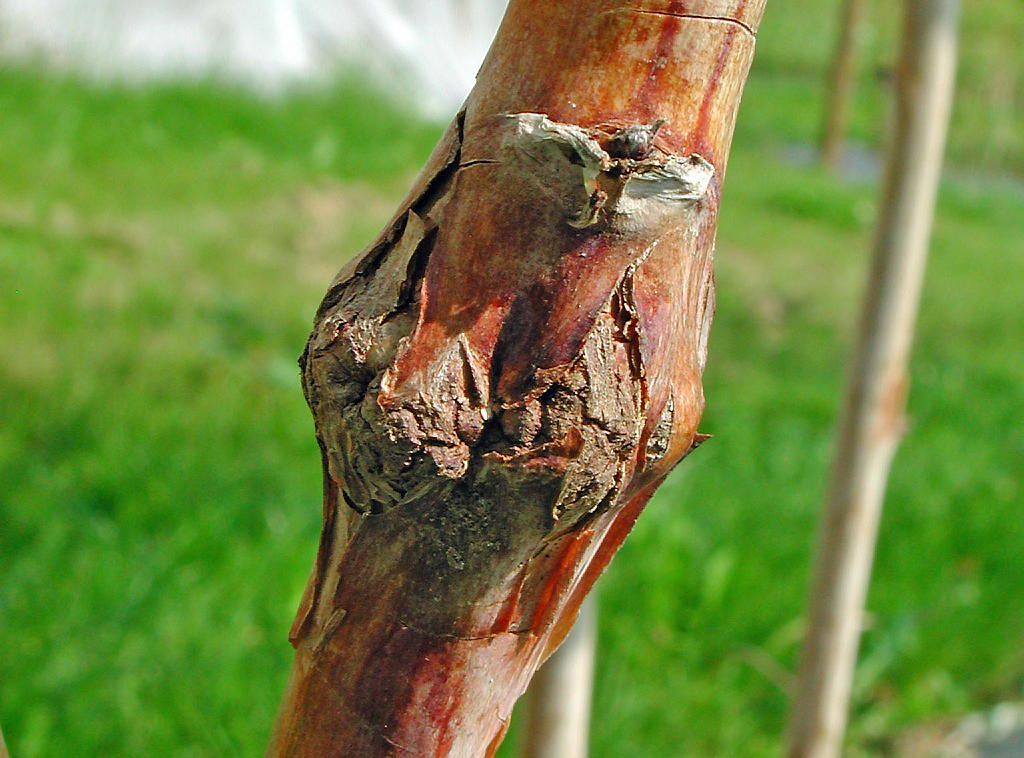 Bringebærgallmygg fører til galledannelse på stengelen (Foto: Nina Trandem, NIBIO)