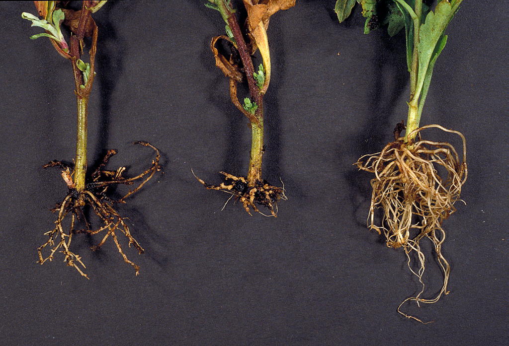 Rotsårnematoder på krysantemum. (Foto: B. Hammeraas / NIBIO)