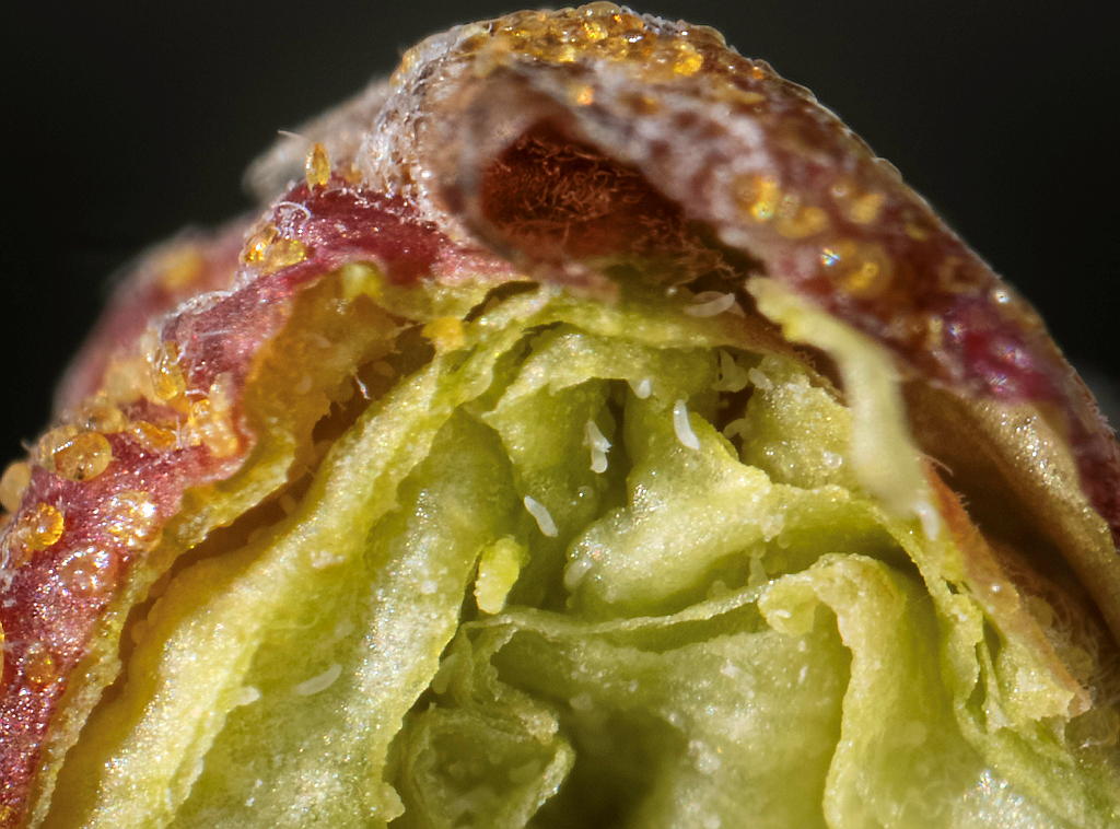 Inne i en oppsvulmet knopp er det flere individer av solbærbladmidd. (Foto: Dag-Ragnar Blystad, NIBIO)